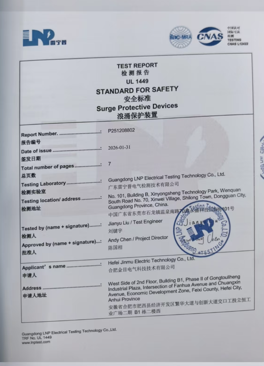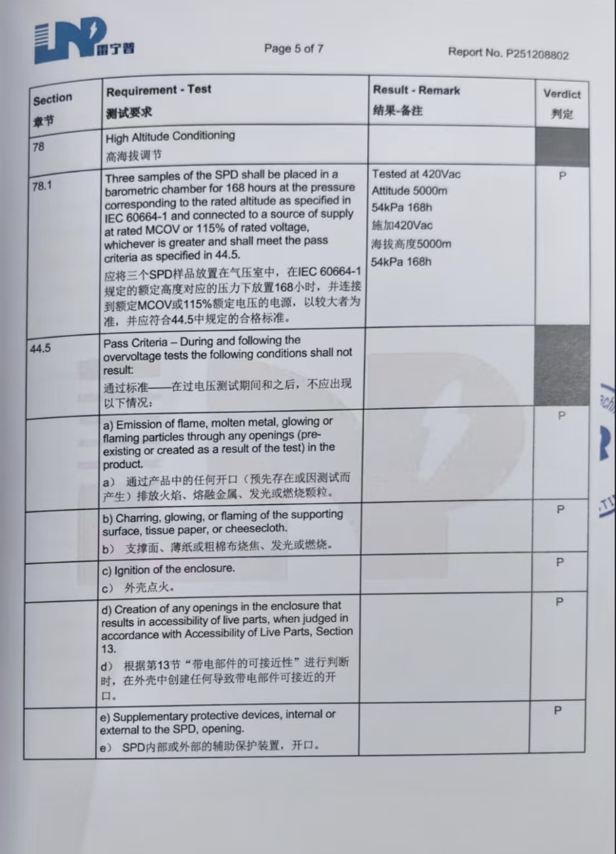 高海拔JMCP-T21浪涌保护器检测报告