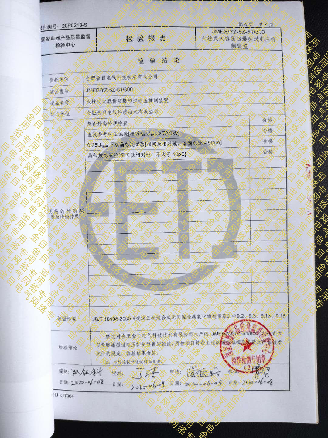 JMEB/YZ六柱式大容量防爆型过电压抑制装置(35KV)检测报告